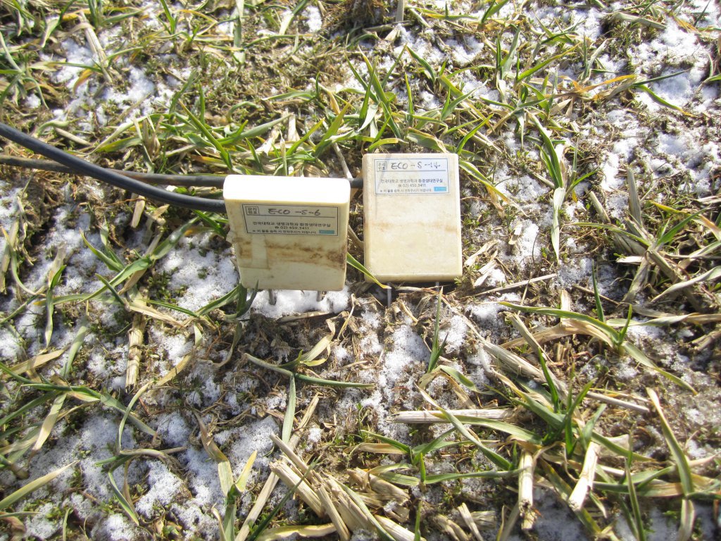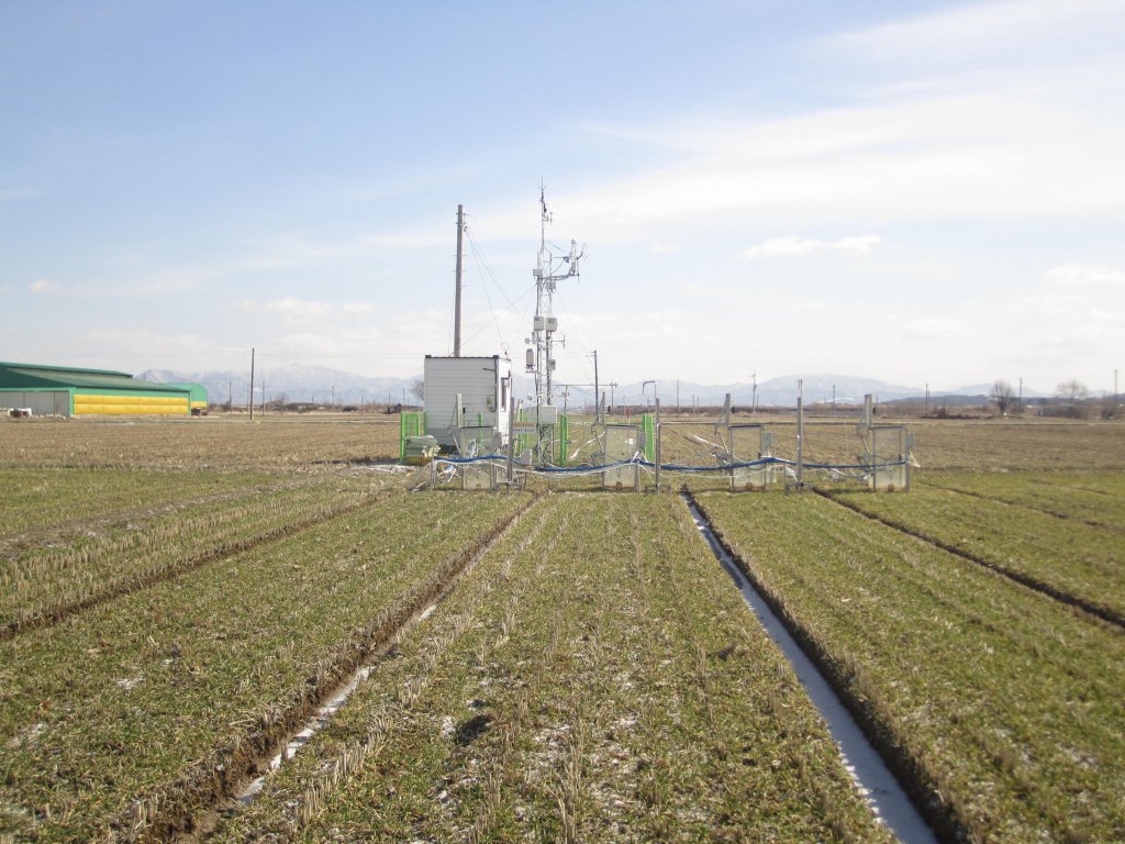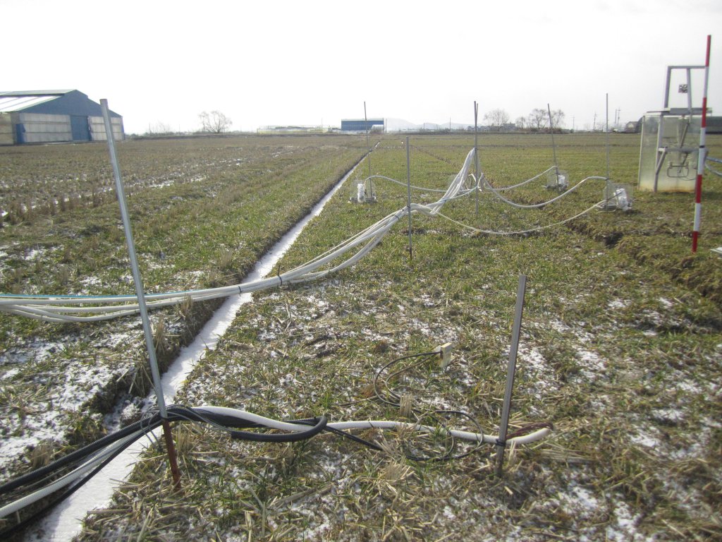 Pictures shows the windside & lee side of EC systems, CO2 &? CH4? chambers, SWC sensors etc.