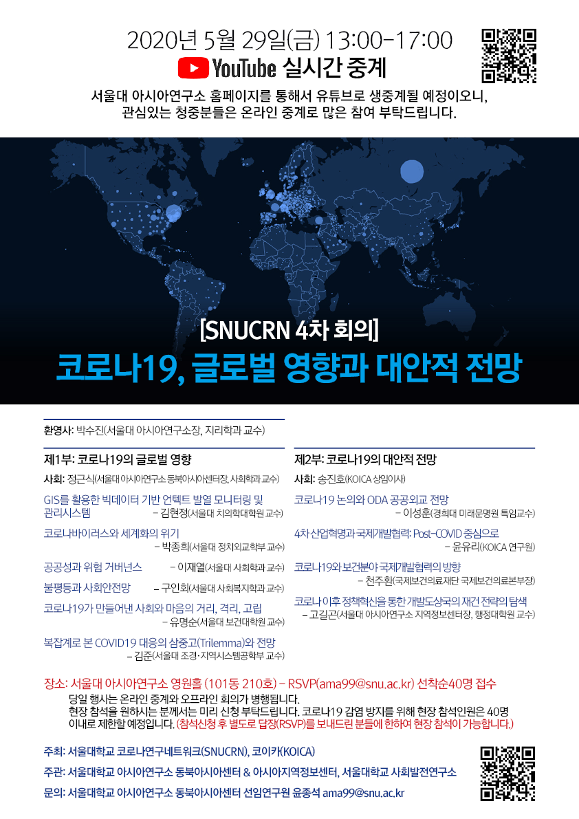 ±è ÁØ ±³¼ö´Ô²²¼´Â ¾Æ½Ã¾Æ¿¬±¸¼Ò ¹Ì·¡Áö±¸ ÇÁ·Î±×·¥ÀÇ µð·ºÅͷμ ÀÌ ÇмúȸÀÇ¿¡ Âü¿©Çϼ̽À´Ï´Ù. ¼¿ï´ëÇб³ ¾Æ½Ã¾Æ¿¬±¸¼Ò´Â Áö³ 2¿ù Äڷγª19 ±ä±ÞÁ´ãȸ °³ÃÖ¸¦ ½ÃÀÛÀ¸·Î, ÄÚÀÌÄ«¿Í ÇÔ²² Àç³ °Å¹ö³Í½ºÀÇ Çü¼º°ú Àü¸Á(4¿ù), Áý´Ü°¨¿°°ú ¾Æ½Ã¾Æ·¾ÆÇÁ¸®Ä«ÀÇ ´ëÀÀ¿¡ °üÇÑ ÇмúȸÀÇ(5¿ù)¸¦ °³ÃÖÇØ¿Ô½À´Ï´Ù. À̹ø ‘Äڷγª19, ±Û·Î¹ú ¿µÇâ°ú ´ë¾ÈÀû Àü¸Á’ ÇмúȸÀÇ¿¡¼´Â Áö³ ¼¼ Â÷·Ê ÇмúȸÀÇÀÇ ¼º°ú¸¦ ±â¹ÝÀ¸·Î 1ºÎ¿¡¼ Äڷγª19ÀÇ ±Û·Î¹ú ¿µÇâ À» Á¾ÇÕÀûÀ¸·Î Áø´ÜÇϰí 2ºÎ¿¡¼ ´ë¾ÈÀû Àü¸ÁÀ» ½Éµµ±í°Ô ³íÀÇÇÔÀ¸·Î½á, Äڷγª19 ÀÌÈÄ Çѱ¹ÀÇ Àü·«°ú ¹æÇ⼺À» µµÃâÇϰíÀÚ Çß½À´Ï´Ù.